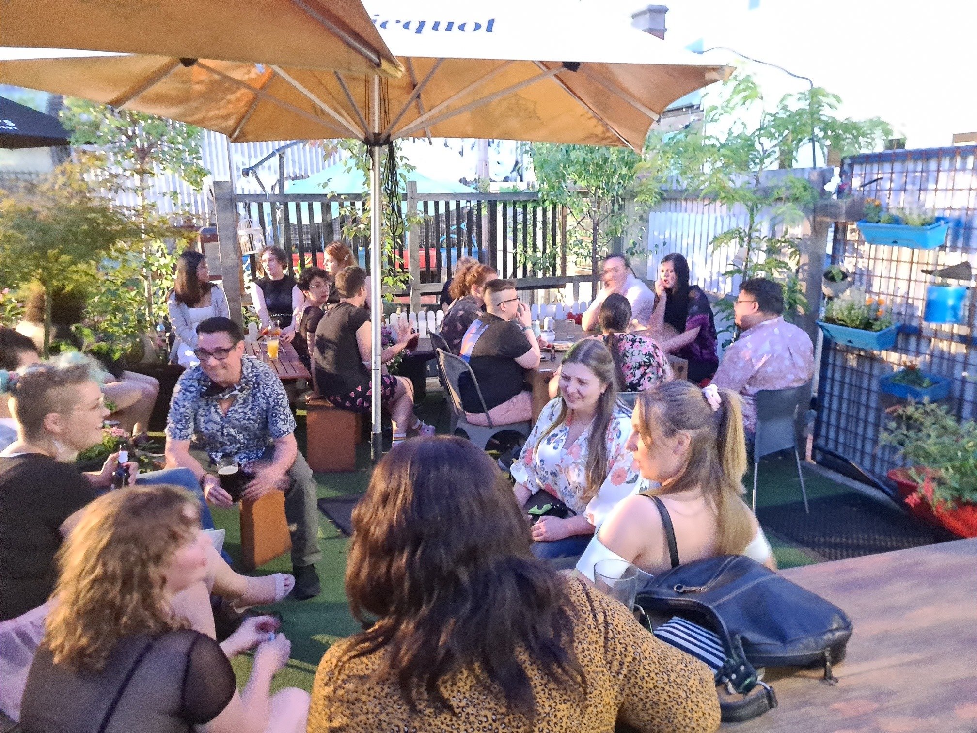Our sunny and green courtyard is perfect for outdoor get togethers. This space can sit approx 50 guests.